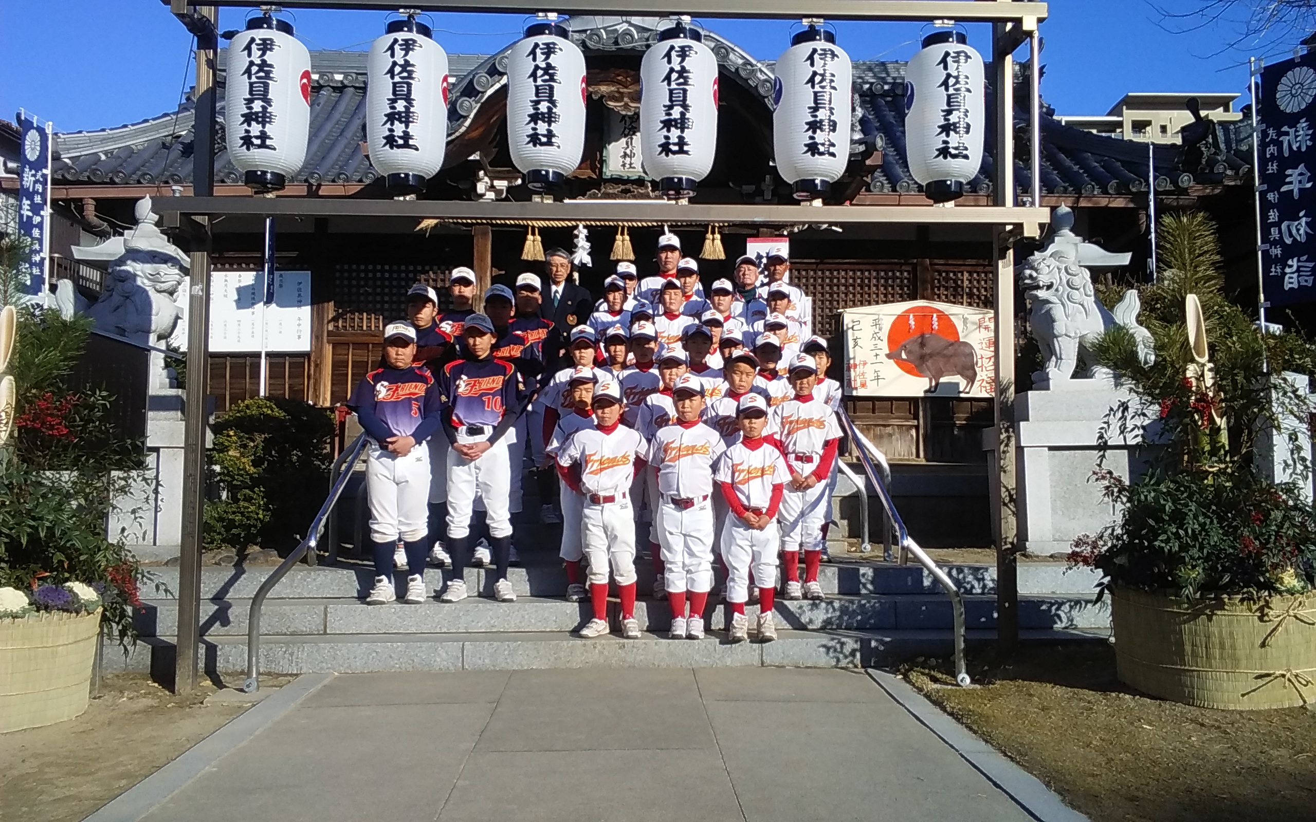 今年も恒例の安全必勝祈願を園田フレンズ小学部と合同で伊佐具神社にて行いました。