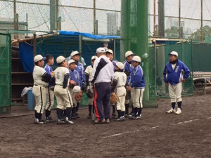 午後から尼崎工業高校 硬式野球グランドに移動しての練習となりました。また、金少クラブ様の6年生が体験練習に参加してくれました。雪の降る中での練習となりましたが、シートノック、フリーバッティングを行い、硬式野球を身近に感じてもらうことができました。
